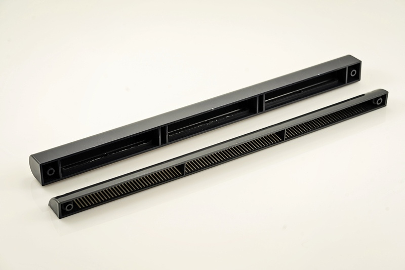 OBRAZ FREZOWANIA (nawiewnik i czerpnia): PCV: trzy szczeliny o długości 112 mm x 10 mm, oddzielone poprzeczkami o długości 10 mm